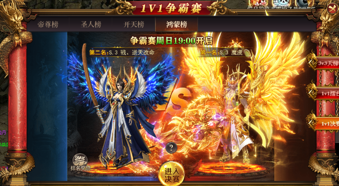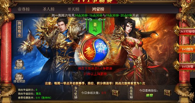 1、跨服1V1是赛季制玩法,一周一个赛季,根据不同转生等级来匹配对应的榜单