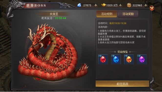 3.击杀火龙王的玩家可获得击杀大奖。