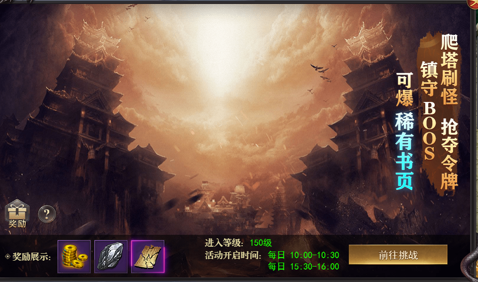 3. 每一层会有BOSS驻守,击杀BOSS有概率掉落珍稀书页,可合成神级技能书。