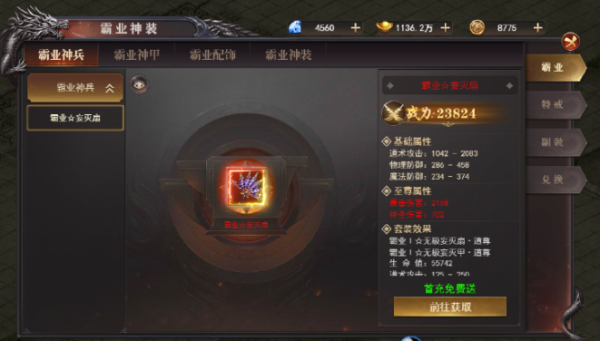 神兵战甲系统开启后玩家穿戴霸业套装,不仅可以获得炫酷的外观表现,还能大幅提升角色PK和杀怪能力